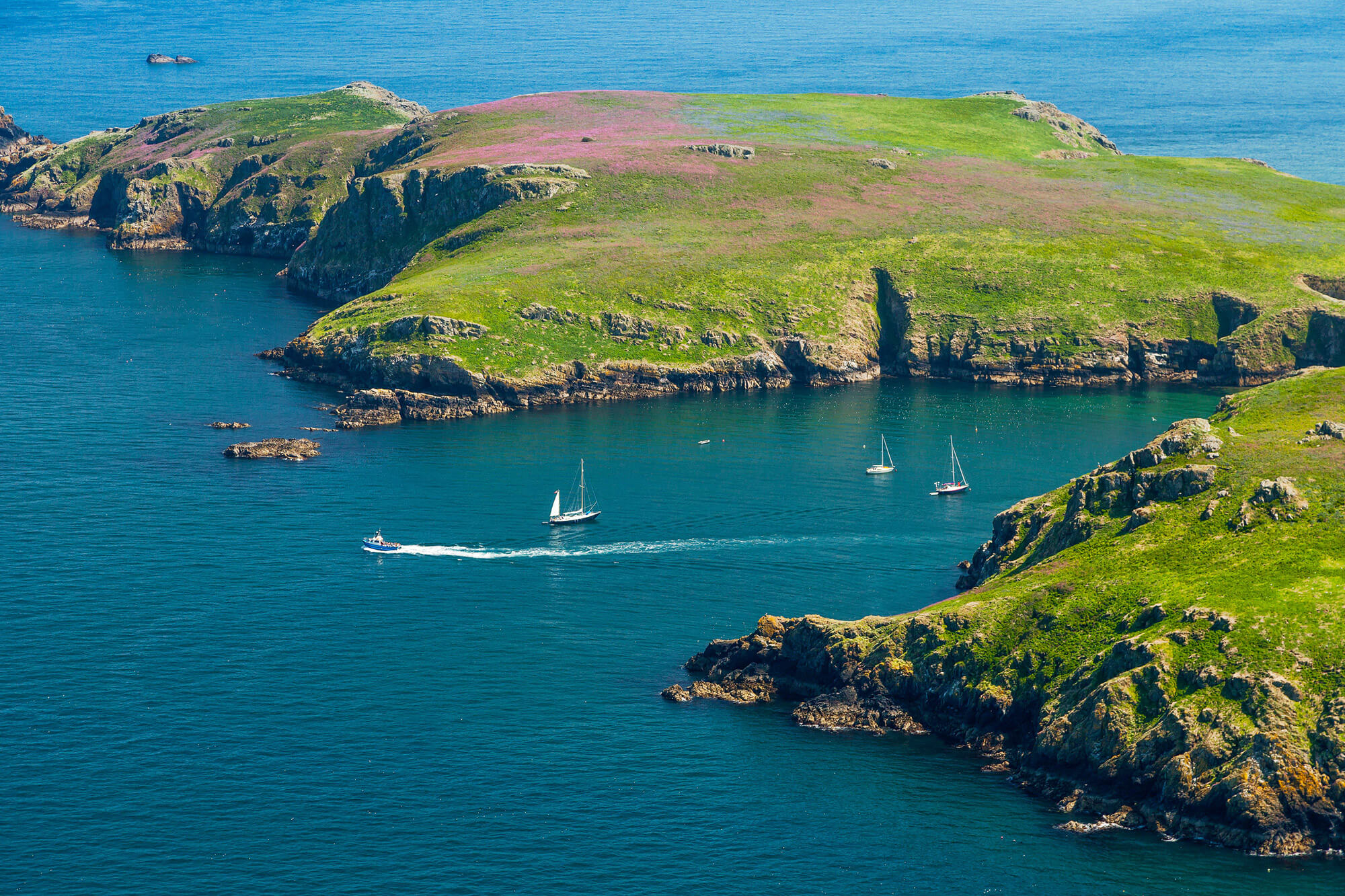 Vandrar du vårt program “Bästa av Pembrokeshire Coast Path” kommer du att hålla till på Skomer Island din andra vandringsdagen. Skomer Island är hemmet till den största kolonin av sjöfåglar i södra Storbritannien. Allra bäst är det på våren, då tusentals tidiga sommarfåglar, bland annat lunnefåglar, Manxliror, tordmular och tretåiga måsar häckar på ön. Under den korta båtturen till och från ön kan det hända att du ser några sälar och delfiner.